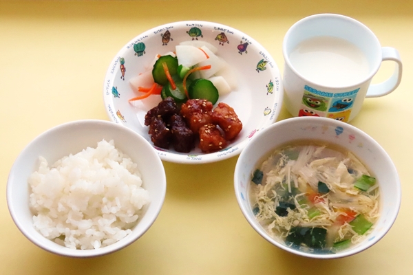 ・ごはん・レバーのかりんとう揚げ・きゅうりの浅漬け・かきたま汁・牛乳 でした!