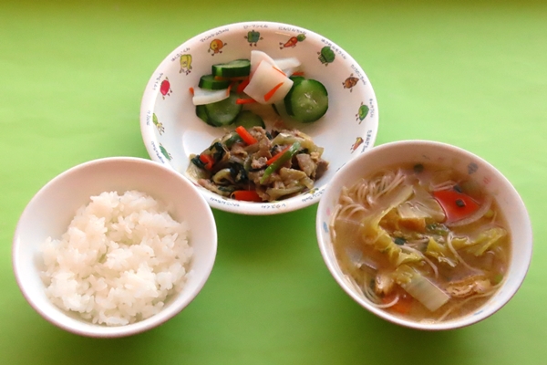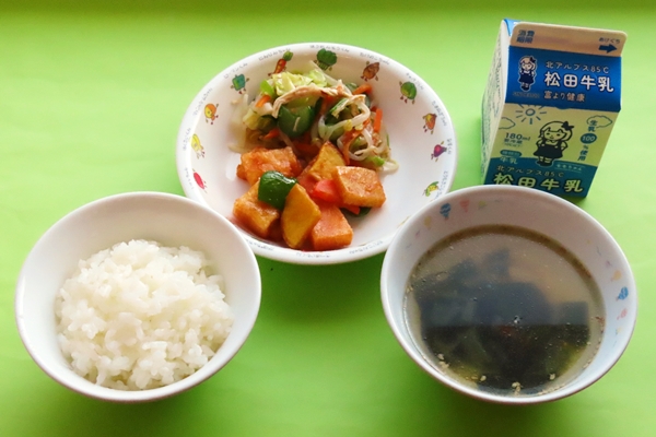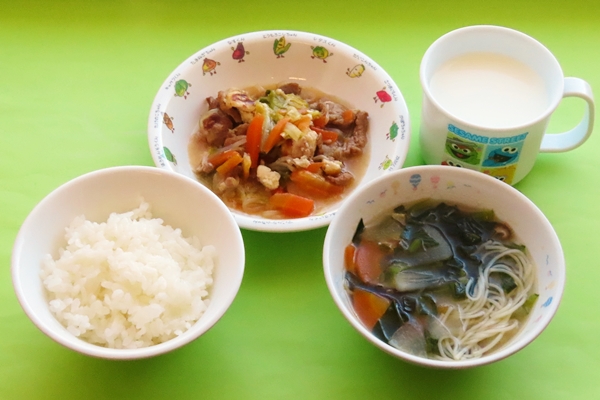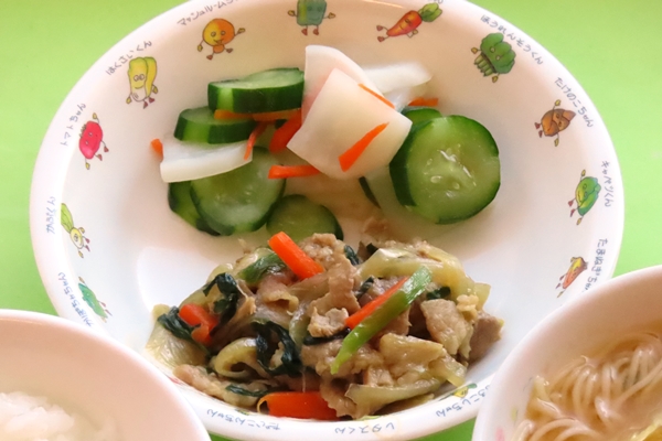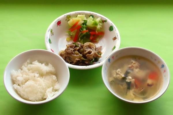 すき焼き風煮は、お肉と野菜がたっぷりと入っていて満足感のある一品でした。そうめん汁は麺好きな子どもたちに大人気でどちらもみんな完食でした♪