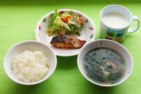 1月28日の給食は・ごはん・さわらのみそ焼き・シーザーサラダ・チキンスープ・牛乳 でした!