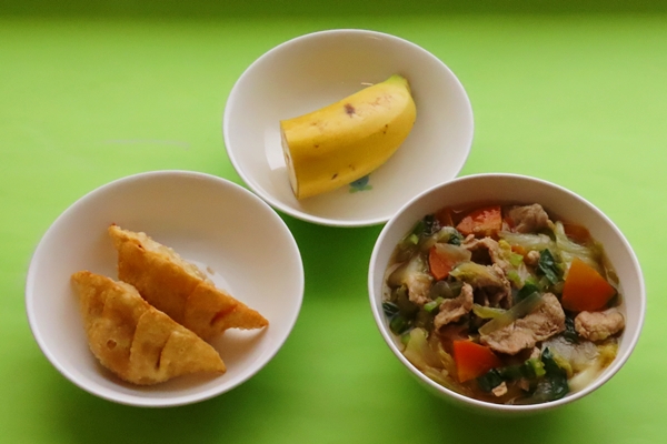 ・すき焼きうどん・かぼちゃのチーズ揚げ・バナナ でした!