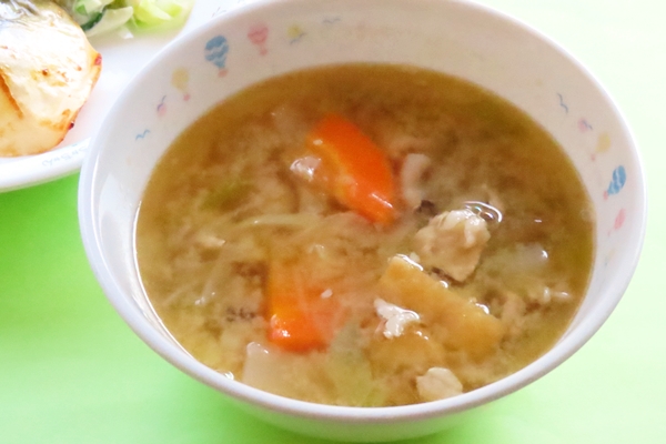 五目スープはたくさんの野菜が入っていて、溶き卵や豆腐も入っているのでとっても満足感のあるスープです。品数が少ない献立の時は一品ずつ具沢山になるようにしています♪