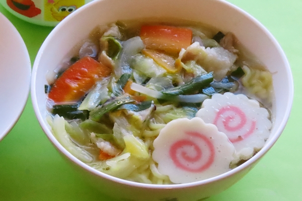 今日のタンメンは、スープの作り方を普段と変えてみました。いつもは野菜だけ別で加熱をするのですが、今回は鍋で野菜をいためてそこに水を入れてスープを作ることで、やさいのエキスが染み出てよりコクのあるスープになりました♪こどもたちもスープまでごくごく美味しそうに食べてくれました!
