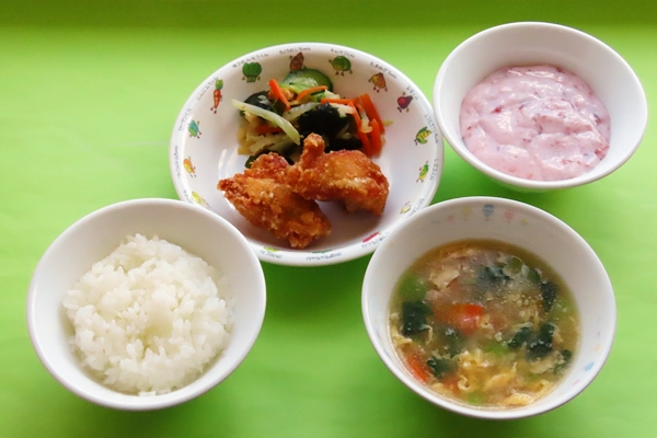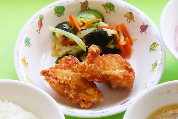 今日は11月のお誕生会献立でした。山賊焼きは子どもたち、「普通のから揚げより美味しい!」と大喜びでパクパク食べてくれました!(味付けは変わらないのですが…笑)から揚げはやはり大人気ですね♪11月生まれのおともだちお誕生日おめでとう!!