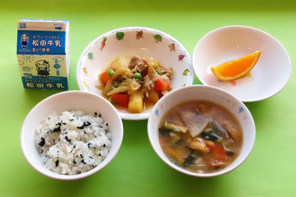 肉じゃがは、調味料と野菜の水分だけで煮ているので味が染みてとっても美味しく仕上がります。最近は煮物も人気な子どもたち、今日もモリモリ食べて完食でした!