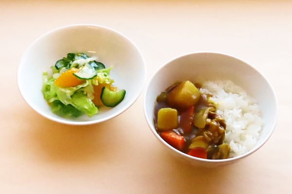 カレーライスはやはり大人気で、みんな飲み物のようにあっという間に食べていました…!さっぱり味のみかんのフレンチサラダもみんなみかんを探しながらニコニコで食べてくれました!