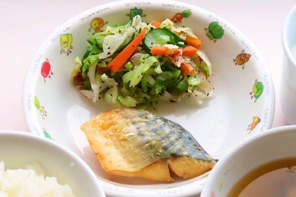 さばのみそ煮はじっくりコトコト弱火で煮込んでいるので味が染みてごはんがすすみました。今年はみんなお魚好きらしく、おかわりもしてたくさん食べてくれました!
