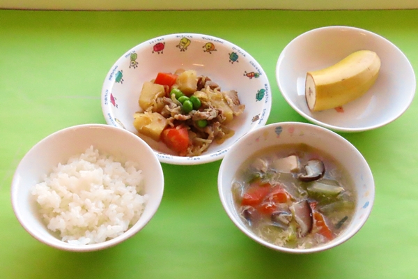 ・ごはん・肉じゃが・五目スープ・バナナ でした!