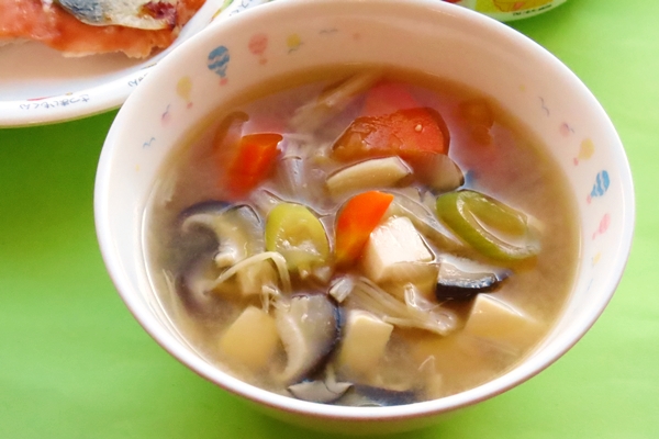 そうめんのすまし汁は野菜が沢山入っていてそうめんも入っているのでとっても満足感のある一品です。みんなそうめんが大好きで「そうめん沢山入れて!」とお願いしていたようです。笑