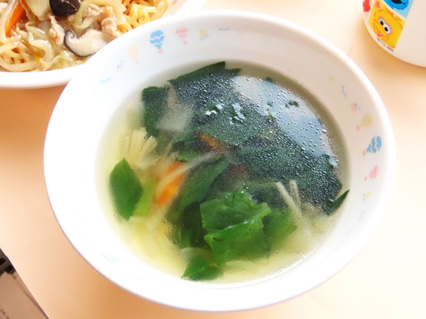 プルコギは丼物の献立にすることが多いので少し濃いめの味付けになりましたが、ごはんが進んだようです。きのこの中華スープは椎茸、えのき、ぶなしめじの三兄弟が協力しあって旨味成分を出してくれるのでとても美味しいスープになります。きのこが苦手の子どももたべられるようです♪