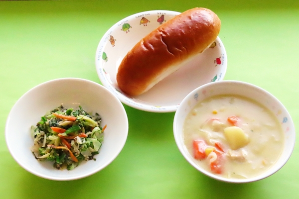 ・コッペパン・豆乳コーンシチュー・切干のりゴマ和え でした!