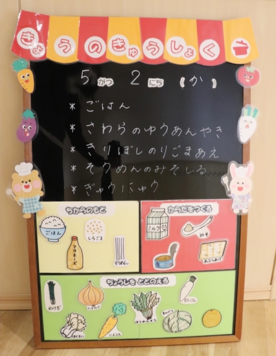 サンラータンは、普段の中華スープにお酢が入ってさっぱりとした味わいになります。酸(さん)辣(らー)湯(たん)の「辣」は辛くなってしまうので入れていません。子どもたちが酸っぱすぎて食べられなくならないように、ほんのり酸っぱい味つけにしました。ほし組さんでは「ぽん酢の味かな?」とお話しながらおいしくたべてくれたようでした♪