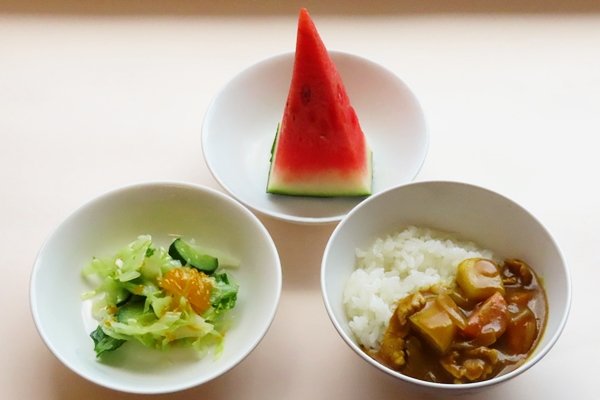 ・カレーライス・みかんのフレンチサラダ・すいか でした!