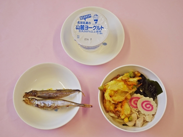・かき揚げうどん・さつまいものオレンジ煮 でした!